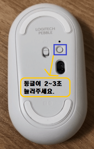 - M350마우스 뒷면에 동글이 버튼을 눌러주세요.